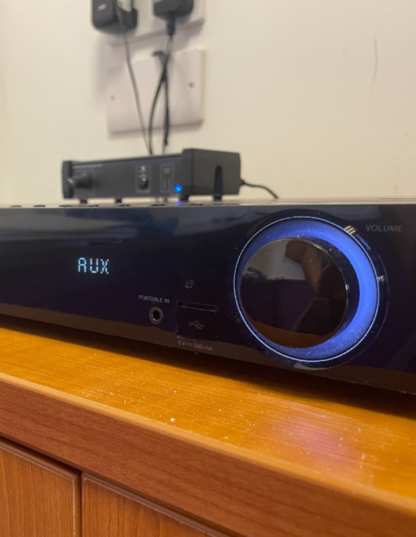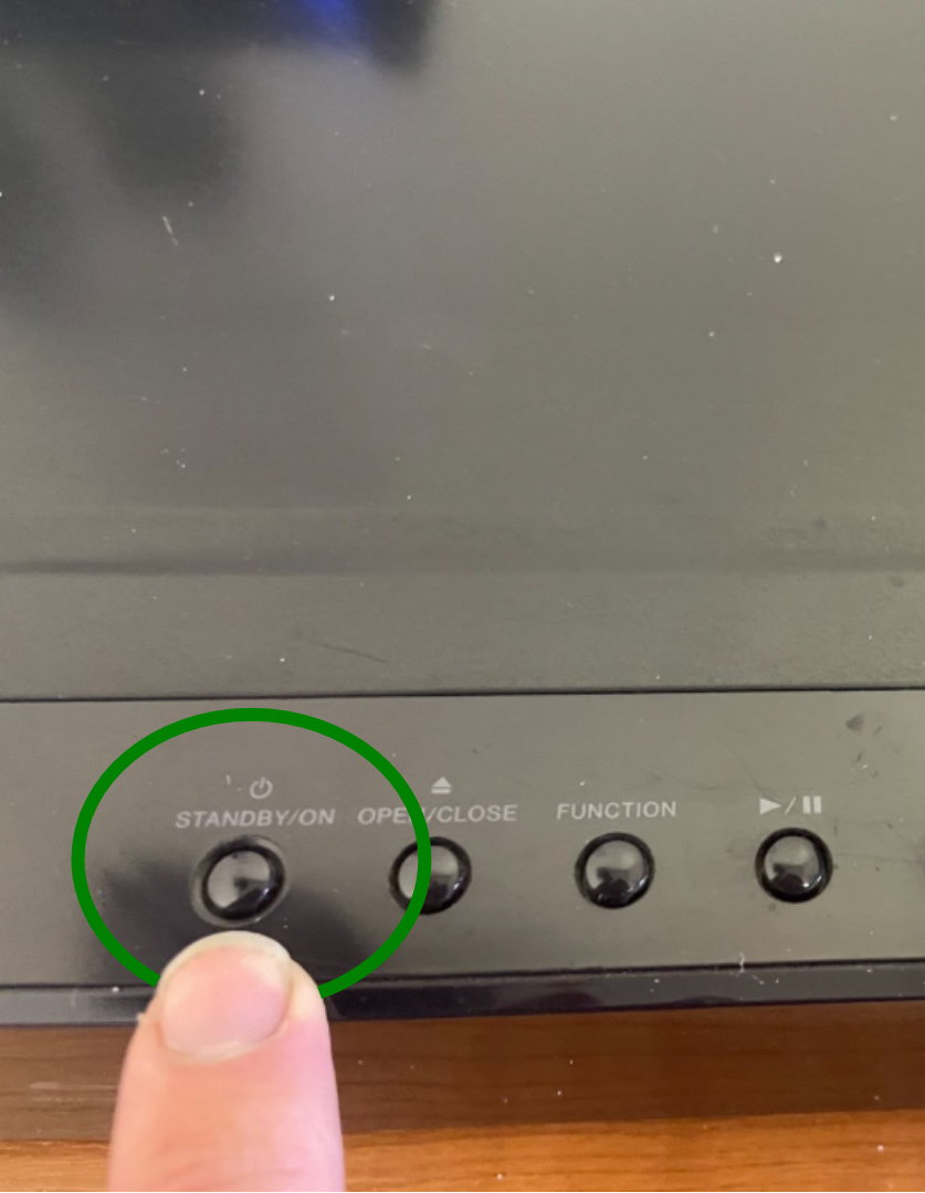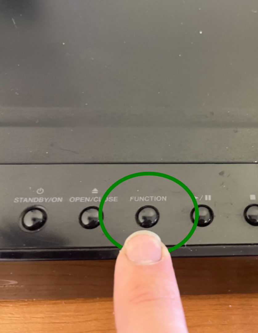 Once on, check the display screen says ‘AUX’. If it doesn’t press the function button located on the top of the player until it does.